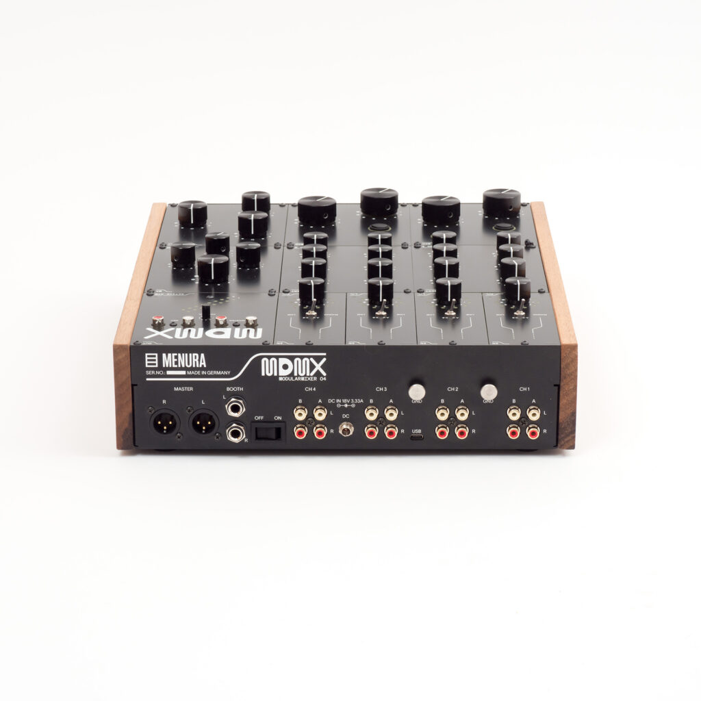 The MDMX is one of its kind: From now on, you are the designer of your own mixer. Endless possibilities for fine-tuning to your requirements. You can adapt the mixer to your needs and let the mixer be part of your musical development. For example, you can modify the MDMX to a Rotary 2-Band-EQ Disco Mixer, however, when fed up with disco, put on linear faders and a 4-Band-EQ for fast-paced and fine-grained mixing of electronic music. All MDMX modules are designed to work flawlessly together, enabling endless combinations. We’re offering a wealth of input options, ensuring seamless integration into your existing setup. Whatever your equipment or configuration, the MDMX will fit right in and elevate your mixing experience.
